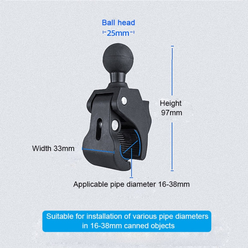 The QwadClaw clamp with Double Socket Arm Mount kit with Base Adapter's is a versatile mounting solution that can be used on a variety of round surfaces, including manual wheelchair frames. The clamp's unique design allows it to securely grip round surfaces without causing damage, making it perfect for use with wheelchairs.